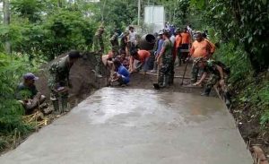 Ibu-Ibu Pun Ikut Kerja Bhakti Bersama TNI Bangun Jalan Beton Panggang