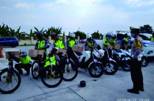 Satlantas Polres Klaten Bagikan 1000 Paket Sembako untuk Tukang Ojek