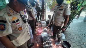 Sat pol pp dan aparat gabungan sita 870 bok rokok ilegal di wilayah kecamatan Bayat.